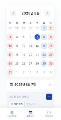 You can easily check the bus departure time. You can check two day, three day, and four day schedules and manage your personal schedule.