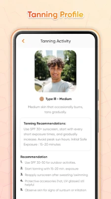 Sun Tracker & Tan Create app includes powerful tools to monitor your tanning journey over time. The Tanning Progress feature lets you view past tanning sessions with detailed, date-wise tracking of your activity. Through the Profile View, you can access a history of your tanning records, helping you understand your progress and make informed adjustments. With a clean layout and detailed data, Sun Tracker & Tan Create makes tanning safer, smarter, and more personalized.