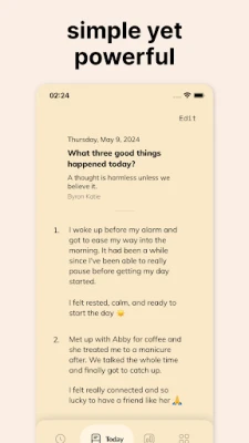 Our gratitude journal supports your mental wellness through techniques like the 3 good things app and the three good things app. Take just two minutes each day to reflect on the good things with our good things app and gratitude journal.